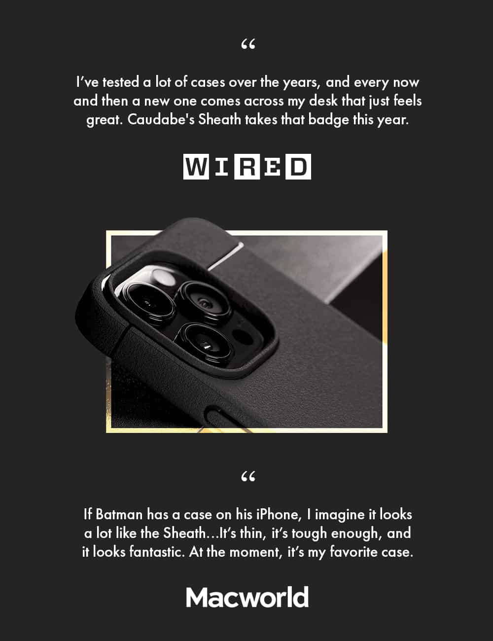 With its clean lines and minimalist aesthetic, Sheath embodies quintessential Caudabe design. Crafted from ShockLiteTM, our proprietary shock-absorbing polymer, Sheath combines sleek design with exceptional drop protection. It's no wonder Wired named Sheath the 'Best Overall' iPhone case.