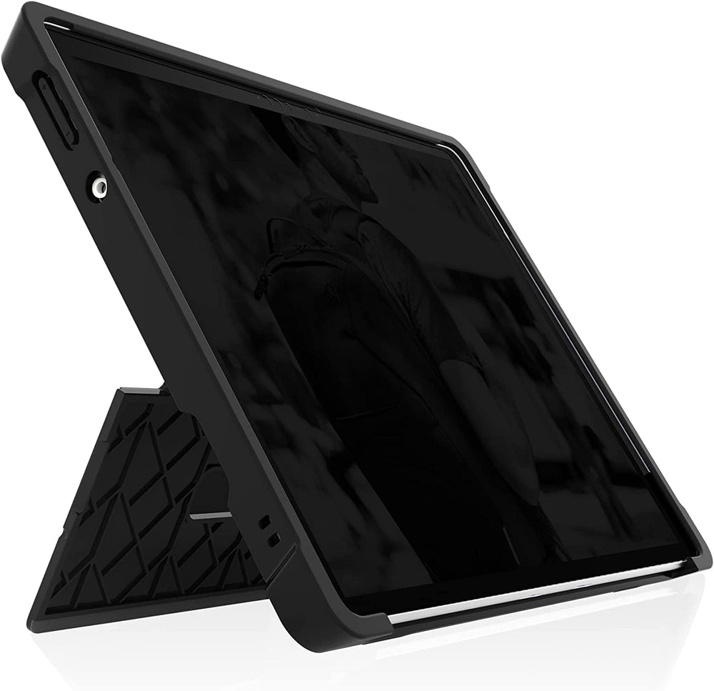 The Dux Shell is a sleek and rugged case designed to fit and protect the Surface Pro 8, complement the Type Cover and Surface Pen or Classroom Pen 2. Our unique, transparent back panel allows the pristine beauty of your device to shine through. Slim and lightweight, yet super protective, with the Type Cover installed the Dux Shell has been tested to meet or exceed U.S. Department of Defense 810H drop tests standards.