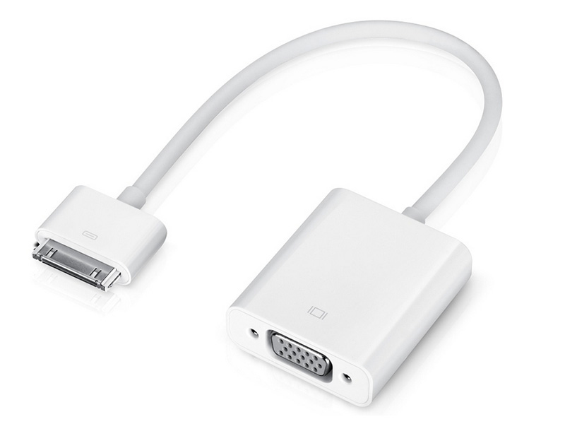 The Apple VGA Adaptor enables mirroring of iPad or iPhone 4S screen content on a VGA-compatible TV, display, or projector in up to 1080p HD, including apps, presentations, and websites.