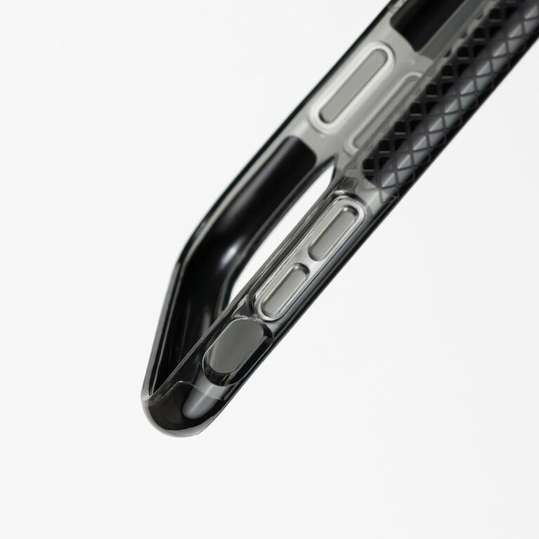 • Soft bumper with rigid, transparent back