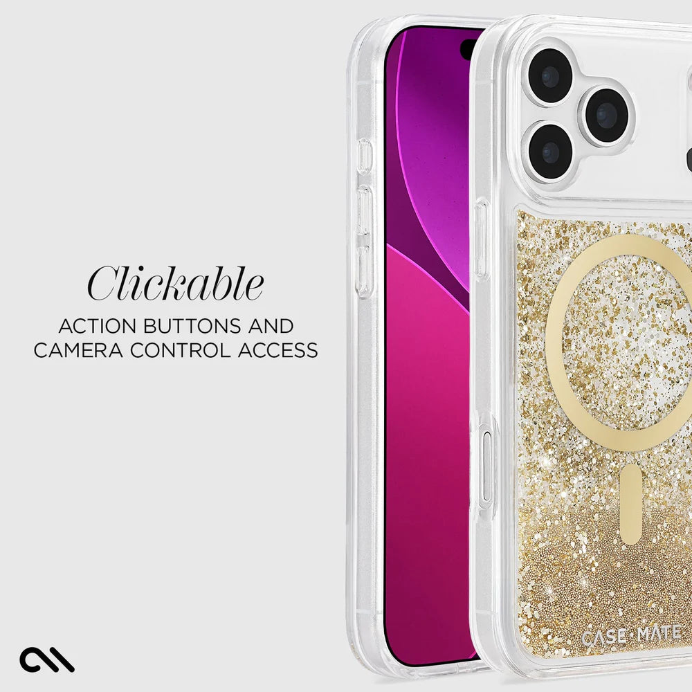 Make your iPhone stand out with the Case-Mate Gold Waterfall MagSafe Case — where luxury meets protection. Designed for the iPhone 17 Pro, this glitter-infused case features real cascading gold glitter suspended in non-toxic fluid, creating a dazzling waterfall effect that moves with every tilt.