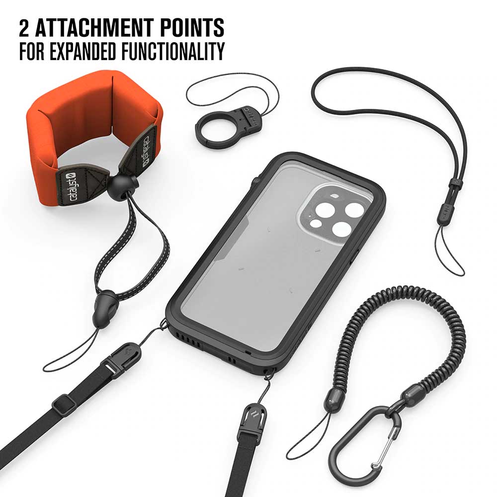 Each Total Protection case has 2 corner attachments that are compatible with various items of our Crux Gear line as well as our floating lanyards giving you the option to accessorize to your needs.