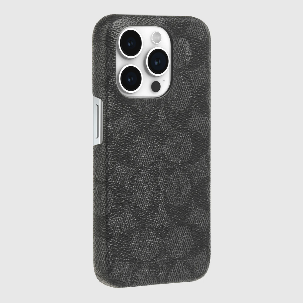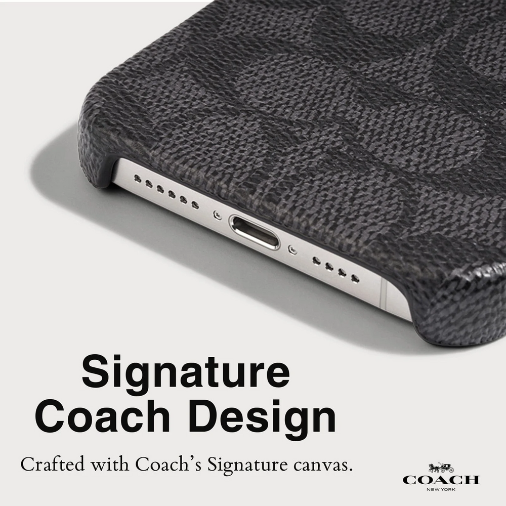 Our signature, your style, for the iPhone 15 Pro— crafted from Coach’s Signature canvas, this phone case adds heritage style to your phone. Bring luxury to your everyday accessory with a 10ft drop protection and thin case profile that doesn't interfere with wireless charging.