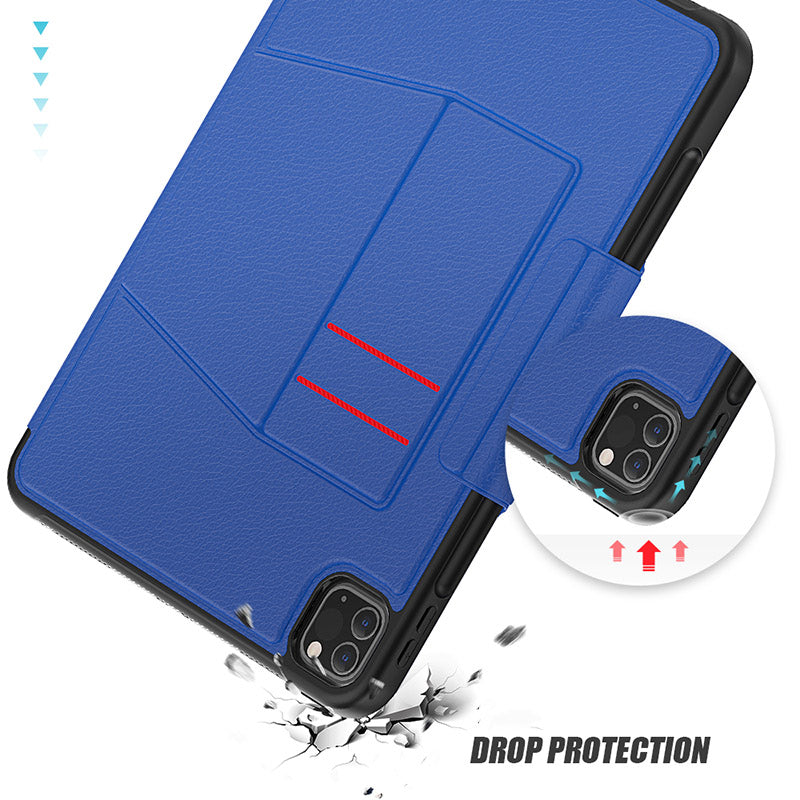 Enjoy rugged and tough case protection for iPad Air 5 & 4 10.9 & iPad Pro 11, with synthetic leather folio style design. Shock-absorbing bumpers with anti-slip grip design on the edges of the case, give extra protection again drop and bump.