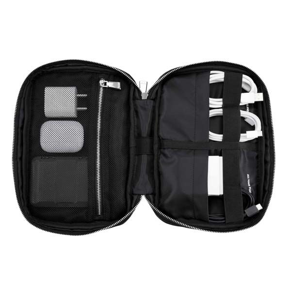 A: It’s perfect for cables, chargers, earbuds, power banks, USB drives, and small gadgets.