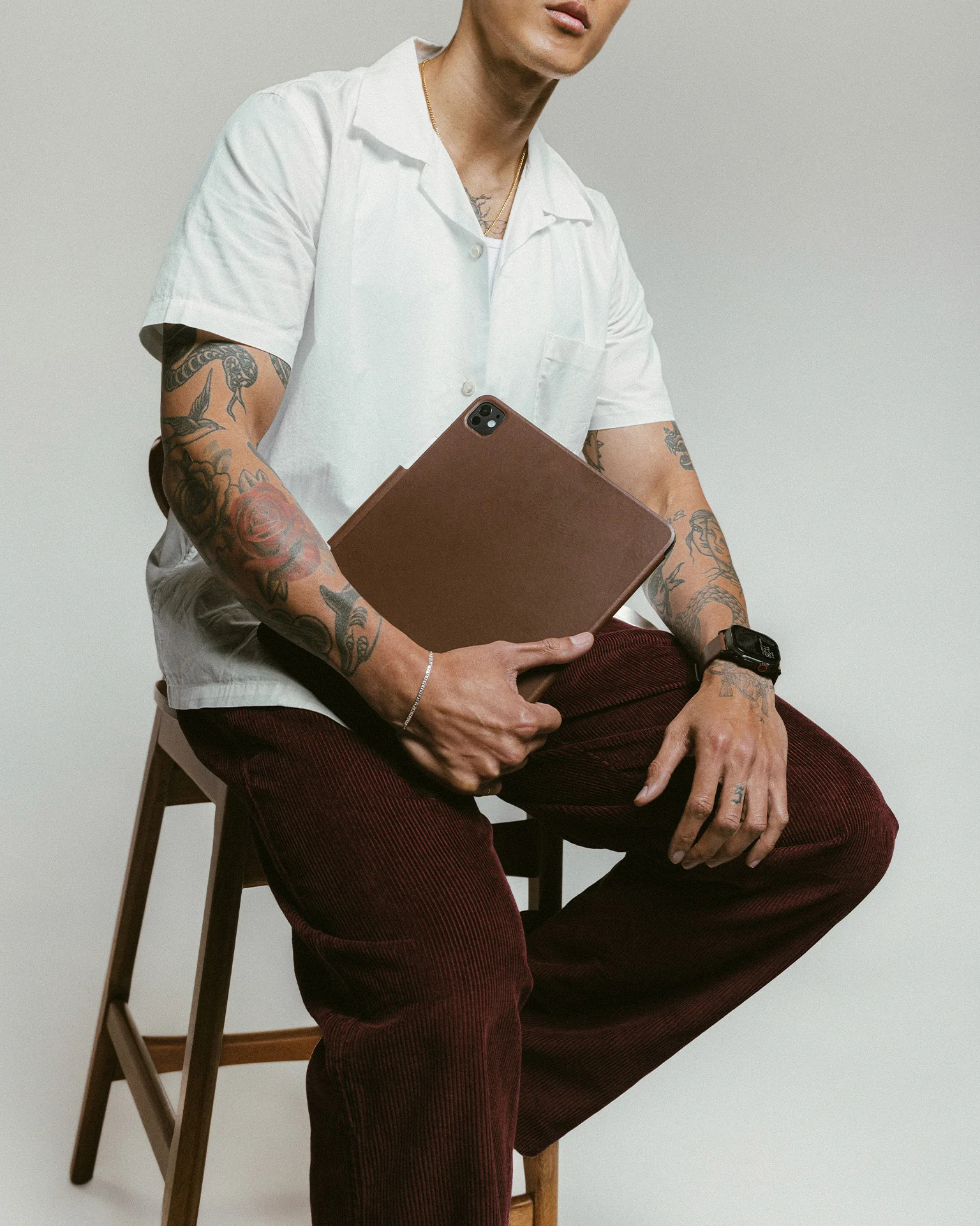 Harnessing the power of over one hundred magnets, Leather Folio effortlessly connects to your iPad while maintaining its slim profile. Its refined leather finish elevates your iPad's aesthetic while protecting against everyday wear and tear.
