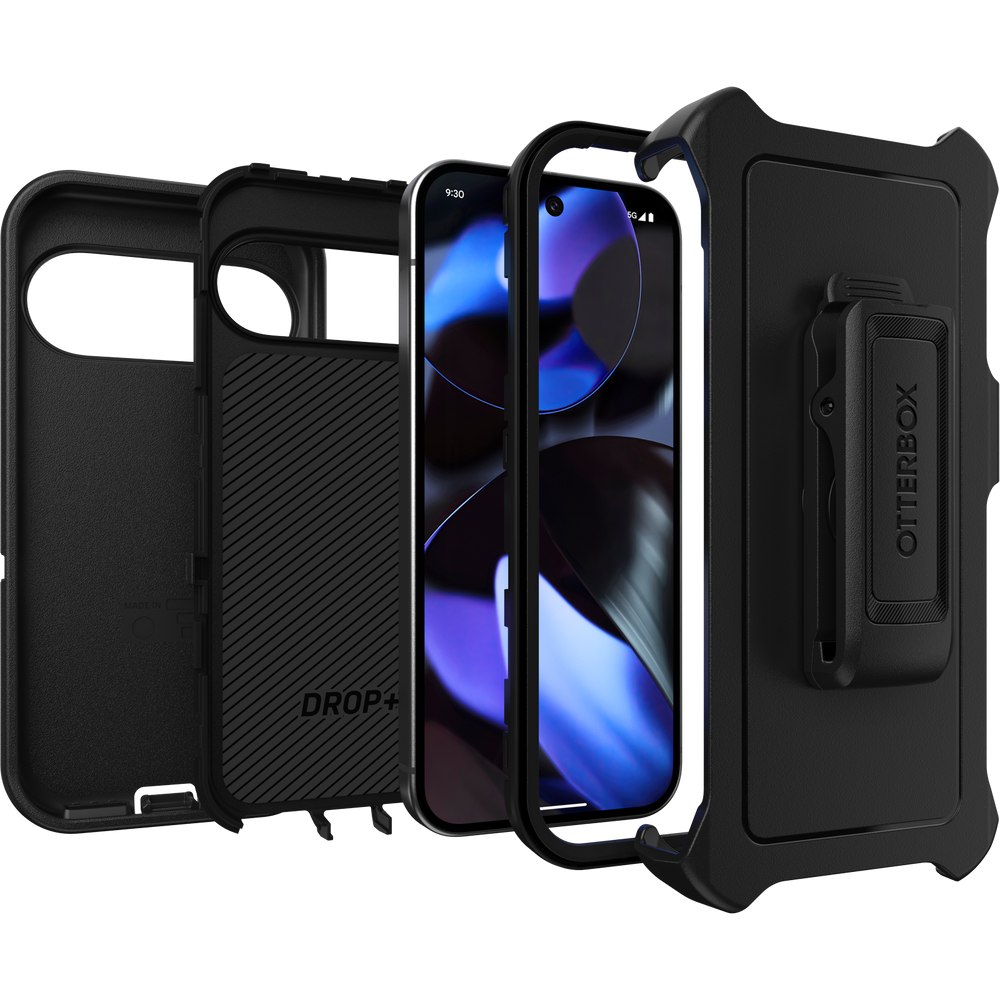 Legendary durable Pixel 9 / 9 Pro case, Defender Series, with a multi-layer construction guards your device from serious drops, dirt, scrapes and bumps. Wireless ready, it works with Qi charging. Plus, the included holster does double duty as a belt clip or hands-free kickstand.