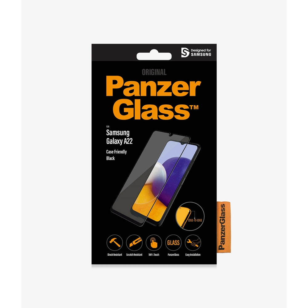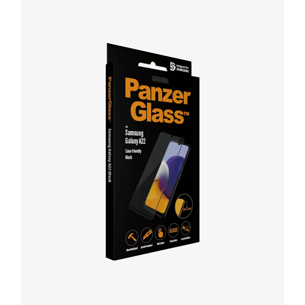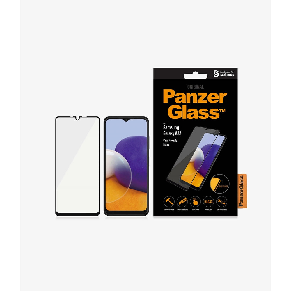 PanzerGlass™ screen protector for Samsung Galaxy A22 4G in black is case friendly and covers the entire surface of the screen. It provides you with the highest standard of screen protectors, while preserving 100% touch sensibility. To mirror the touch and feel of the original display PanzerGlass™ is coated with an oleophobic layer, which both is anti-bacterial and anti-fingerprint.