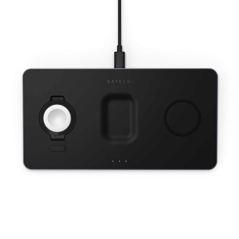 The Satechi Trio Wireless Charging Pad simplifies wireless charging with a convenient place for all your devices – so you’ll never be without a charge. With faster-charging technology and intelligent safety features, the Charging Pad quickly powers a Qi-enabled smartphone, Apple Watch, and AirPods Pro all at the same time.