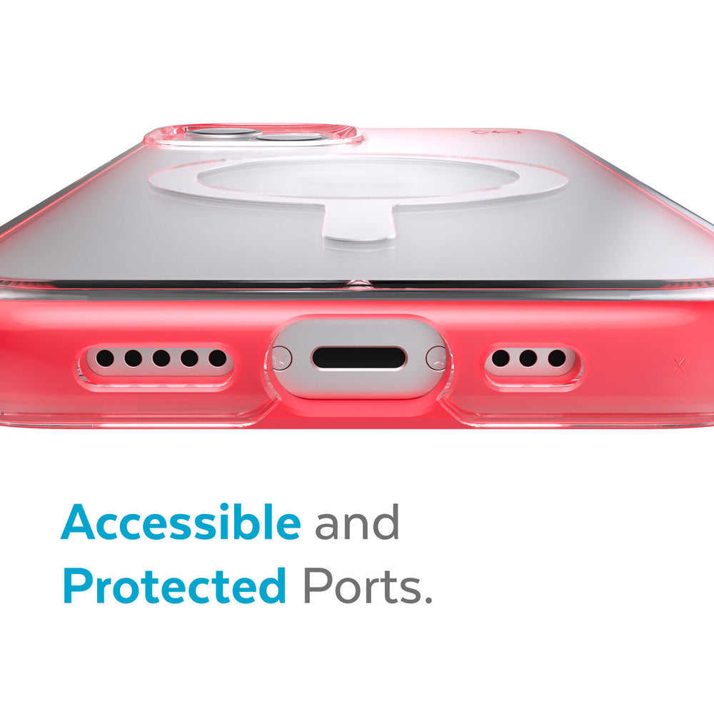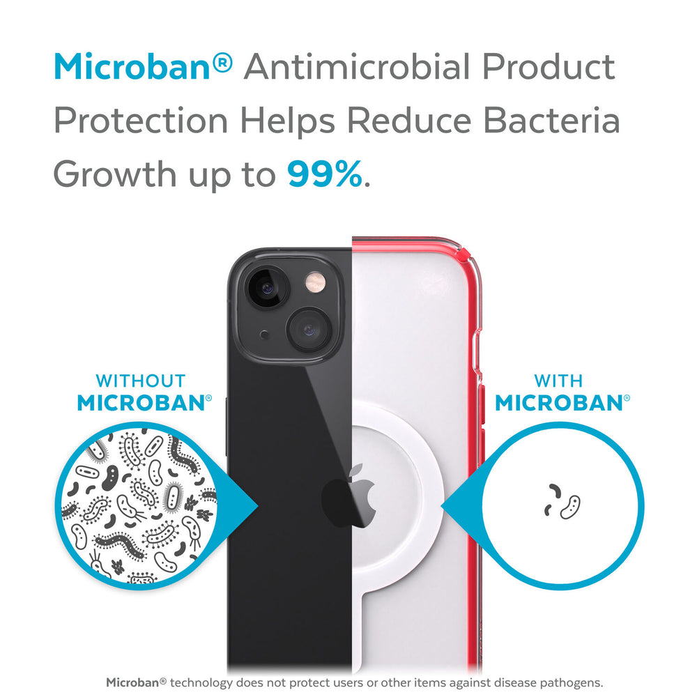 Protective case with impact geometry to protect against 13-foot drops and Microban® antimicrobial product protection. Designed to reliably work with all Apple MagSafe® accessories.