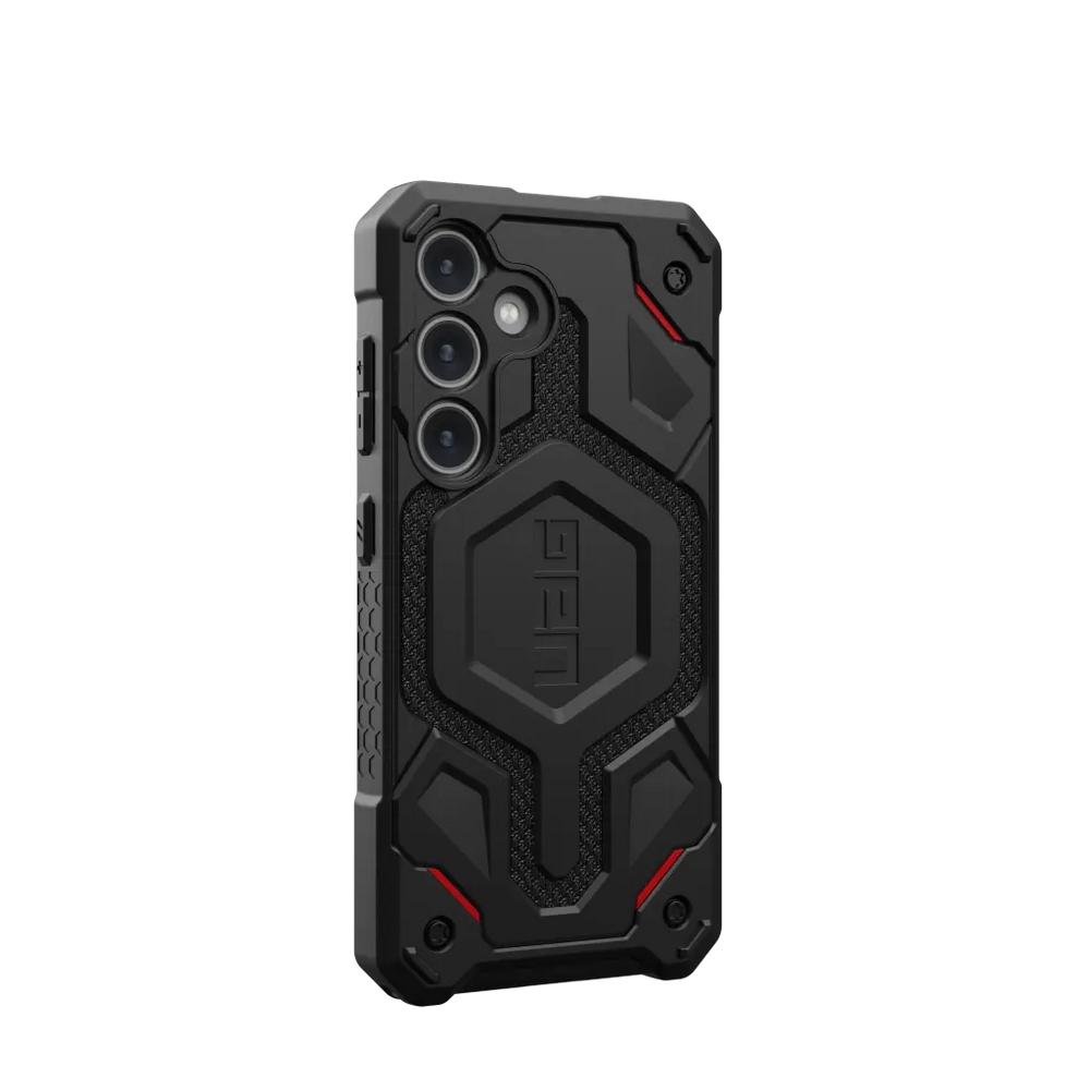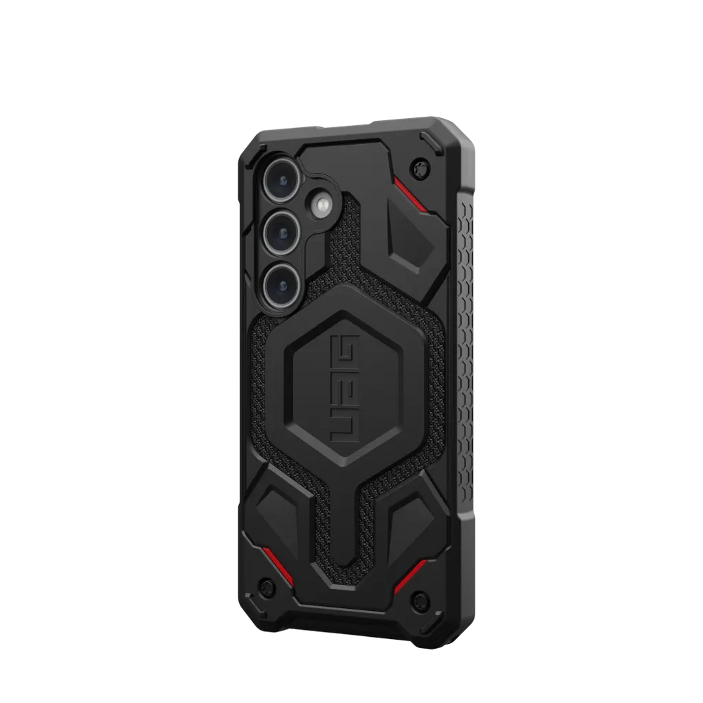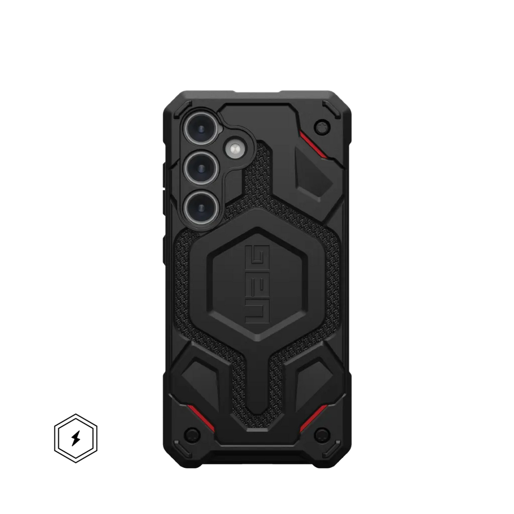 The Monarch Pro Kevlar - the ultimate all-terrain, rugged protective case now featuring a powerful built-in magnetic module. Engineered with premium materials for unrivaled protection. Monarch Pro boasts an impressive multi-layer construction, including a shock-resistant core, a distinctive signature armor frame layered with DuPont™ Kevlar® material, a polycarbonate shear plate, and an impact-resistant rubber surround. With seamless magnetic charging compatibility, this case offers both advanced protection and effortless functionality. The Monarch Pro is built to go further, ensuring your essential tech device stays safe and secure no matter where life takes you.