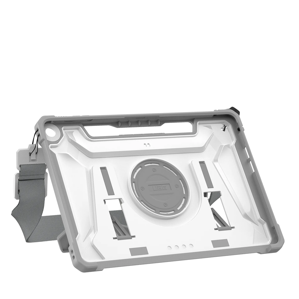Stay mobile with our functional components like the 360-degree rotational hand strap, providing ultimate freedom and security while on the go, offering a secure grip on your tablet in any orientation. The built-in kickstand quickly transforms the tablet into a laptop-style for a stationary workstation.