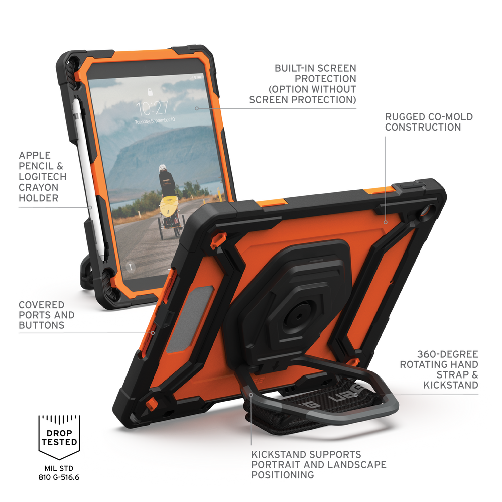 The Plasma Series iPad Case is designed for those who need the most out of their device. The comfortable built-in 360-degree rotational hand strap provides superior handling and makes it easier to work on the go. Apple Pencil (1st Gen) & Logitech Crayon holder so you can keep your Pencil secure and close by.