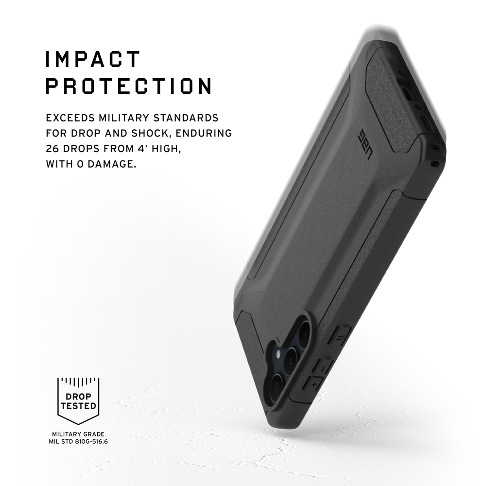 Inspired by modern wanderers - we give you the Scout series. With an updated design of smooth channels, distinguished bumpers, and UAG brand detail. Featuring a featherlight composite construction of strong and durable TPU. The signature UAG armor shell and impact resistant core with a hex pattern for increased shock absorption are essential to protect your phone from daily accidents. Increased textured bumpers provide a non-slip grip and better handling on the go. Chamfered corners for added drop protection. Raised screen surround to protect your phone's glass screen from cracks and a raised camera bezel to protect your camera lens from surface scratches. Tackle every day with ease knowing your device is seriously protected.